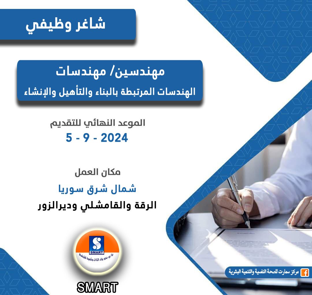 #موقع_العمل: شمال شرق سوريا ( الرقة والقامشلي ودير الزور )
